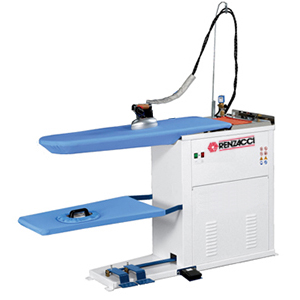 Tábuas de engomar roupa quente e fria, as quais podem ser equipadas com um leque muito rico de opções (braços passa-mangas, pistolas de remoção de manchas, grupos de iluminação, polias para colocar o ferro de engomar, etc.). Também disponíveis tábuas de engomar com altura regulável.